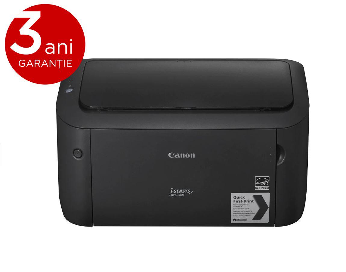 Imprimanta laser mono Canon LBP6030B, bundle, 2x CRG725 incluse inpachet, ( capacitate totala de printare tonere starter + 2x CRG725 3900pagini) dimensiune A4, viteza max 18ppm, rezolutie 600x600dpi, memorie32MB, alimentare hartie 150 coli, limbaj de printare: UFRII LT, volum deprintare max 5000 pagini/luna, interfata USB 2.0, consumabil: CRG725.Extindere garantie la 3 ani gratuit, prin inregistrare. Detalii la https://www.canon.ro/offers/officewarrantypromotion/