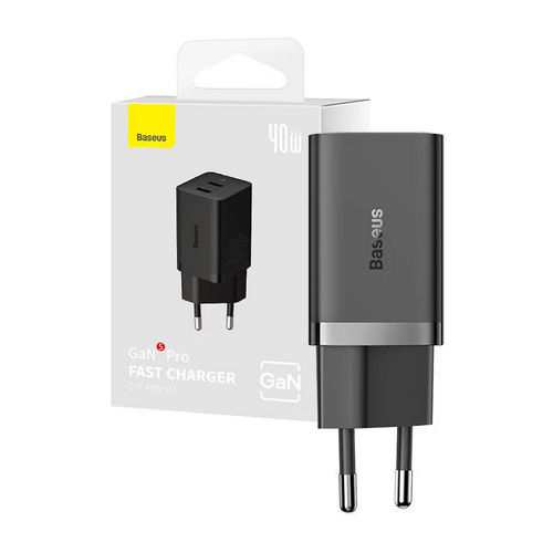 INCARCATOR retea Baseus GaN5 Pro, Quick Charge 40W, 2 x USB Type-C, negru