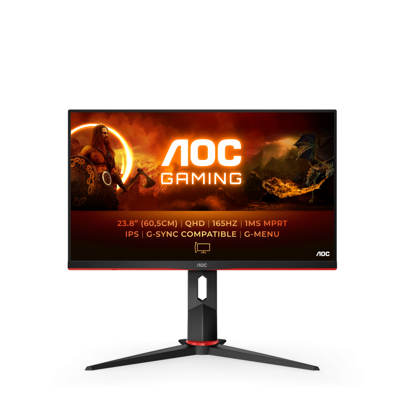 MONITOR AOC Q24G2A/BK 23.8 inch, Panel Type: IPS, Backlight: WLED, Resolution: 2560×1440, Aspect Ratio: 16:9, Refresh Rate:165Hz, Response time GtG: 4ms, Contrast (static): 1000:1, Contrast (dynamic): 80M:1, Viewing angle: 178º(R/L), 178º(U/D), Color Gamut (NTSC/sRGB/Adobe RGB/DCI-P3): TBC, Colours: 16.7 millions, Adjustability: Tilt: -5/25, Height Adjust: 130mm, Pivot: Yes, Connectivity: HDMI 1x 2.0, DisplayPort 1x 1.2, VESA: 100×100