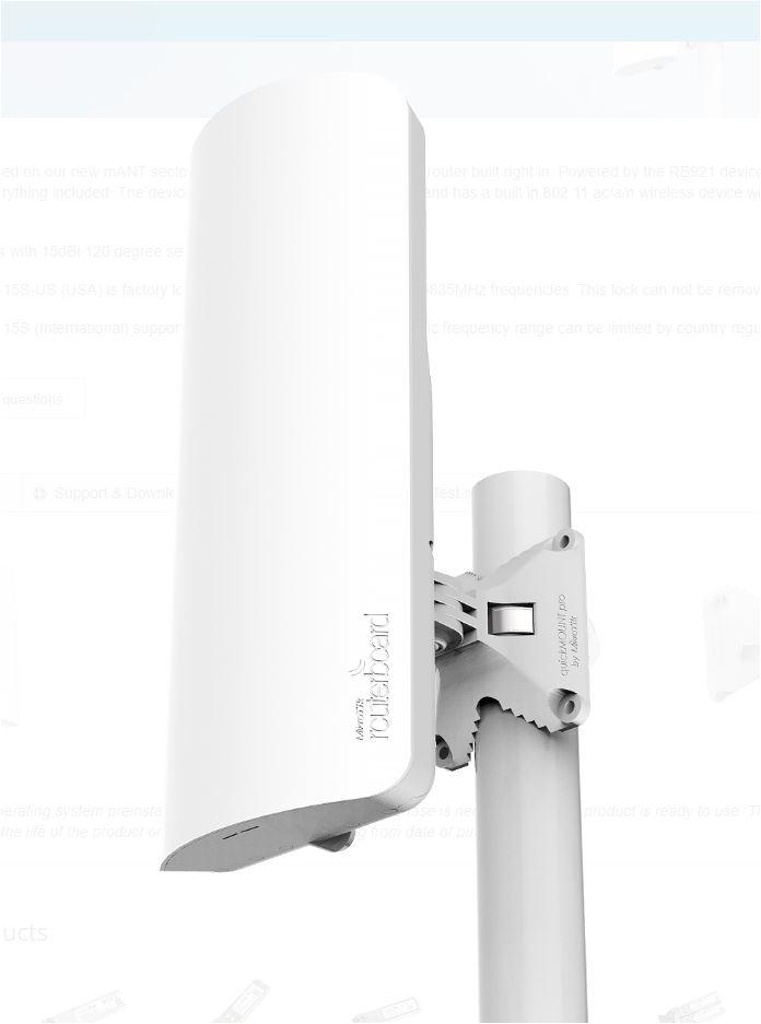 Mikrotik Antena externa 15dBi, 120 grade + router wireless integrat, CPU: 720Mhz, Ram: 128 Mb, dimensiuni: 140 x 348 x 82 mm, Passive POE, viteza wireless 5Ghz 867 Mbit/s, tehnologie: Wi-Fi 5, 1 x 10/100/1000, 1 x SFP.