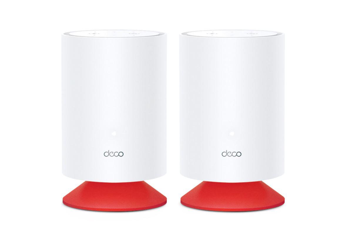 TP-Link AX1800 whole home mesh Wi-Fi 6 cu sistem Alexa integrat, DECO VOICE X20 2PK; Standarde wireless: IEEE 802.11ax/ac/n/a 5 GHz, IEEE 802.11ax/n/b/g 2.4 GHz, viteza WIFI: 5 GHz: 1201 Mbps, 2.4 GHz: 574 Mbps, 2 x antene interne, Dual-Band, MU-MIMO, Procesor: 1.5 GHz Quad- Core, difuzor 5w, 2 x porturi Gigabit.